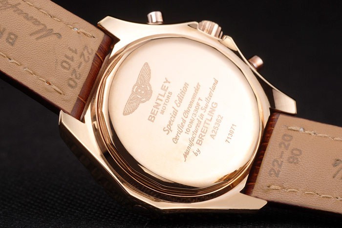 ステンレススチールケース:特許ホワイトステッチと熱とブラウンワニ革ストラップは、ブライトリングの彫刻をエンボス加工し、ブレスレットの長さ