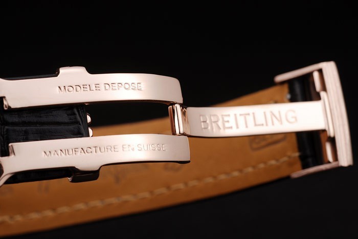ブレスレットの長さfold-刻印ブライトリングロゴとブライトリングブラッククロコダイルストラップをエンボスクロコダイル