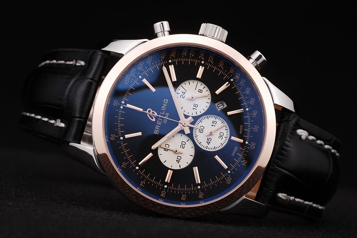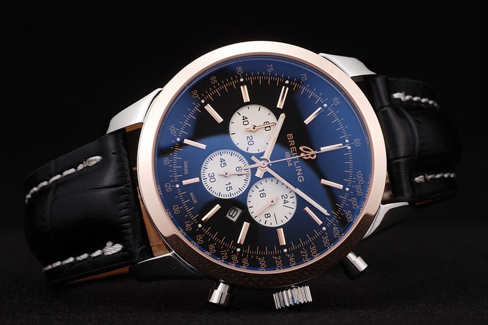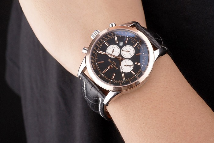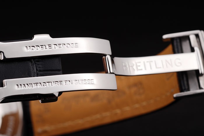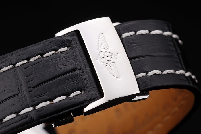 ポリッシュステンレススチールケース:熱はホワイトのステッチ糸とブライトリングのロゴとブライトリングブラッククロコダイルレザーストラップをエンボス加工は、ステンレス鋼は折りたたみ式でクラスプ