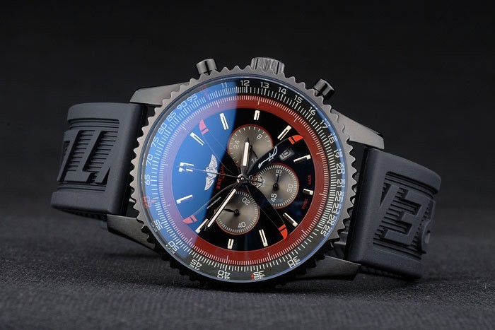 ブライトリング認定ブラックラバーストラップブラッククロノグラフ80180をダイヤル