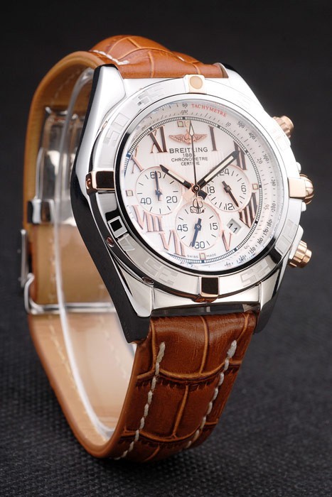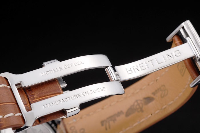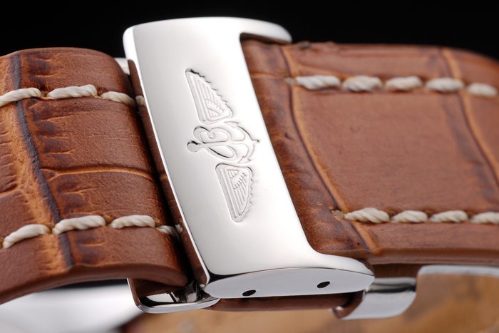 ケース:ポリッシュステンレススチールケースに< BR>ブレスレット:特許ホワイトステッチと熱とブラウンワニ革ストラップは、ブライトリングの彫刻と刻まれたステンレス鋼のブレスレットの長さ