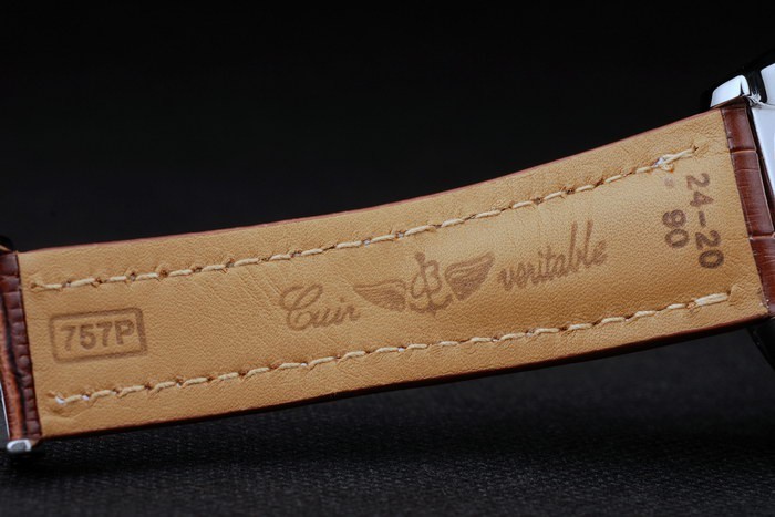 フックバックルロック付きブラウンレザーストラップをスタンプ:ベゼル