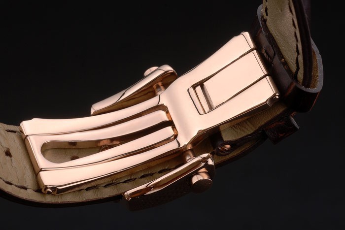 ステンレスケースをメッキ:ブレゲの熱が黒ワニ革ストラップBrequetは18Kが刻まエンボスローズゴールドを倍-にメッキフックバックルクラスプ