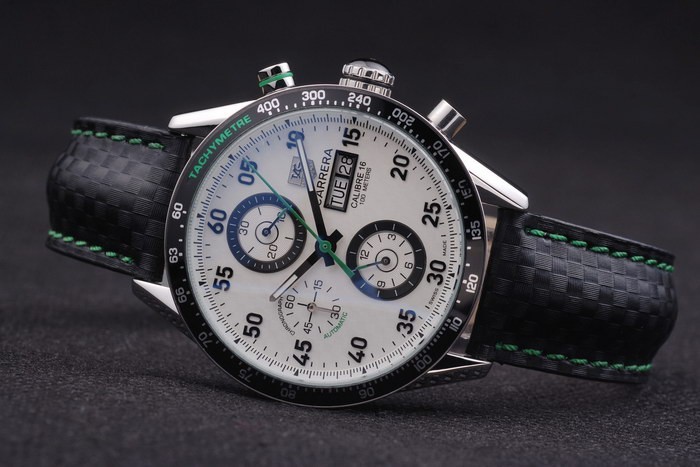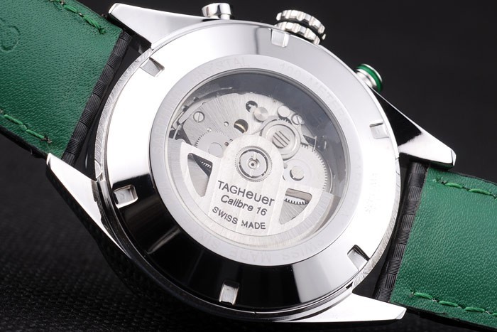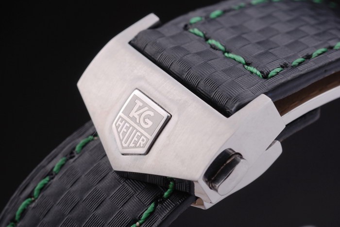 緑色の継ぎ目やマーキングタグホイヤーとつや消しステンレススチール展開クラスプ付レザーストラップ:ベゼル