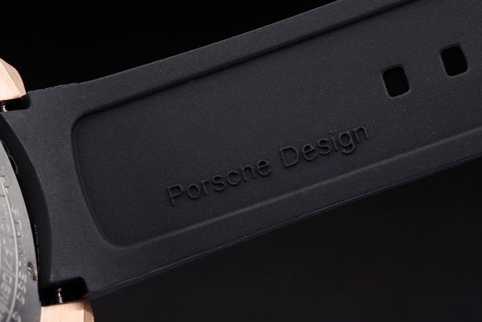 18Kローズゴールドケース:タイヤの溝のブラックラバーストラップ熱でポルシェスタンプをエンボス加工し、ブレスレットの長さ