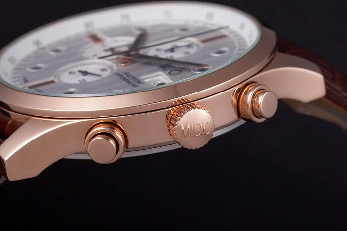 ミドーMultifortブラウンクロコレザーストラップホワイトダイヤル80287