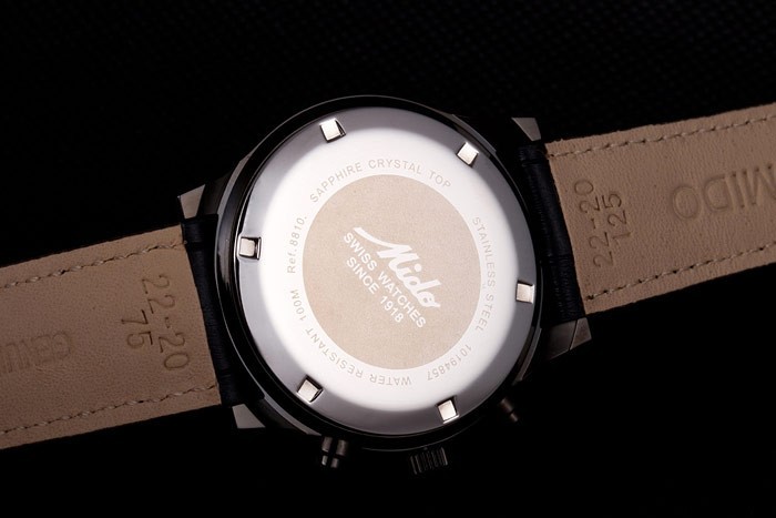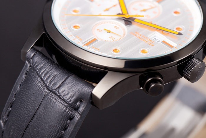 ミドーMultifortブラッククロコレザーストラップオレンジ詳細80289をダイヤル