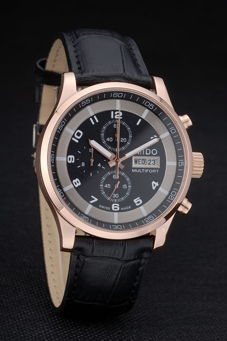ミドーMultifortローズゴールドベゼルステンレススチールブラッククロコレザーブレスレットブラックダイヤル80279