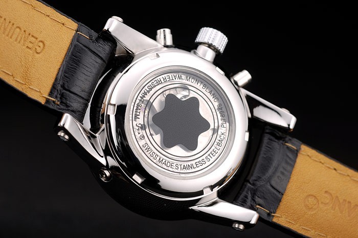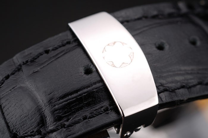 研磨されたステンレス鋼の隠されたフック留め金が刻まモンブランのロゴと黒のワニ革ストラップをエンボス加工しました:皮膚