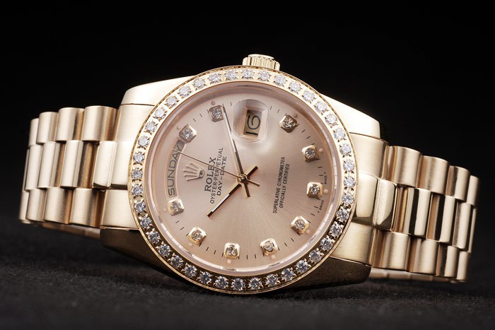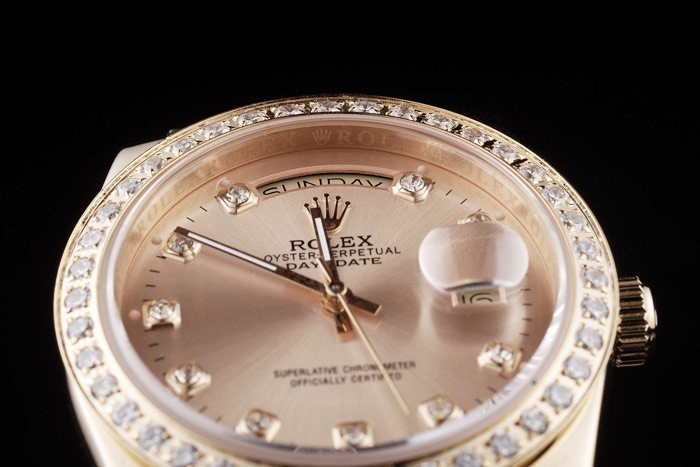 ロレックスのロゴを表示隠された留め金を刻まれた18Kイエローゴールドメッキステンレス鋼のダイヤモンドを散りばめたベゼル< BR>バンドタイプ:ステンレススチール