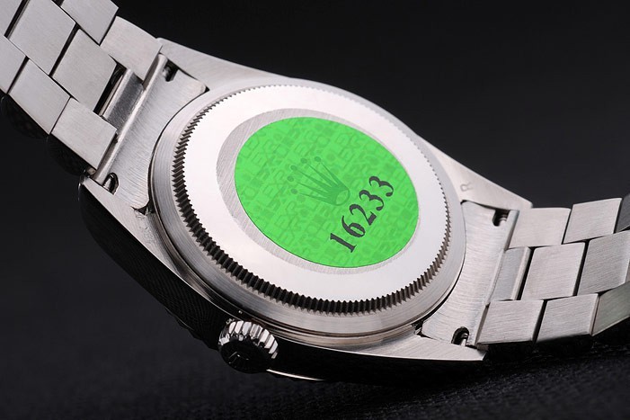 バック:ステンレススチールプッシュでケースの背面の緑ロレックスのロゴスタンプ