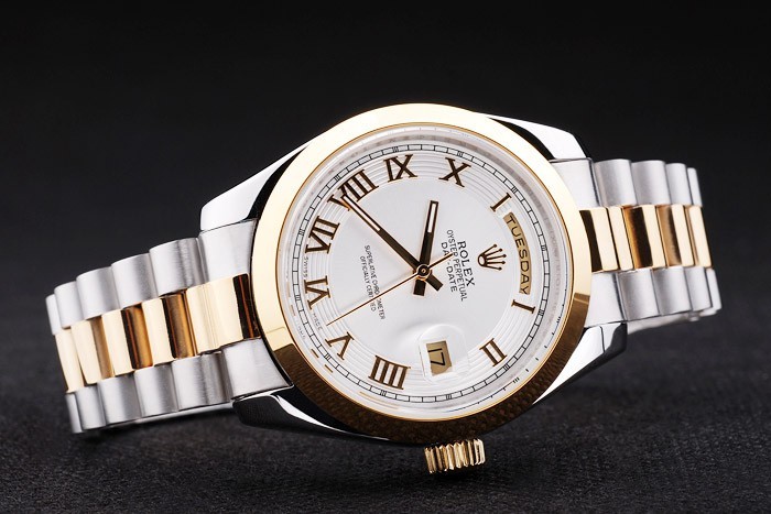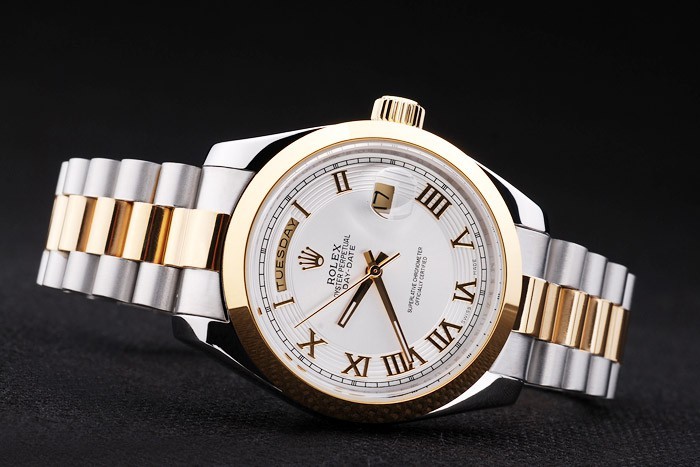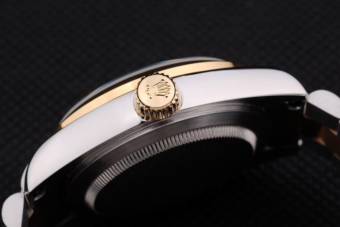 倍オーバークラスプとロレックスの王冠彫刻とステンレススチールとイエローゴールドのリンクチェーンをブラッシュ:ベゼル