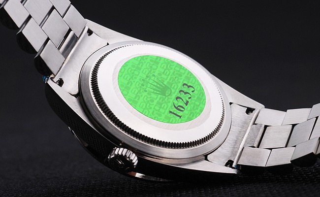 バック:ステンレススチールプッシュでケースの背面の緑ロレックスのロゴスタンプ