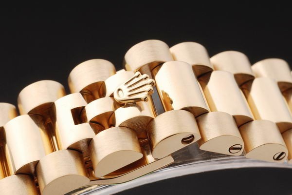 18Kイエローゴールドの樽型ケース:ブラッシュと折り重なりクラスプ
