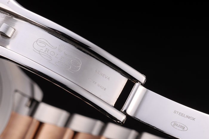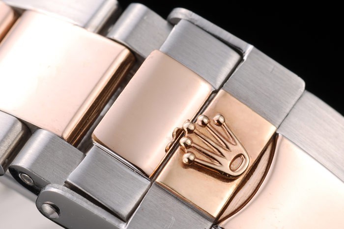 それのいずれかの側にロレックスのロゴと2つの小さなカットワークプッシュボタン冠と18Kローズゴールドのカットワークの王冠:13ミリメートル