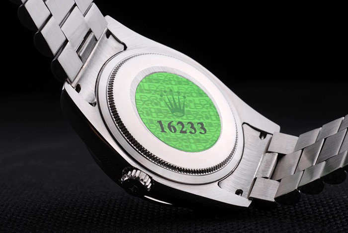 バック:ステンレススチールプッシュでケースの背面の緑ロレックスのロゴスタンプ