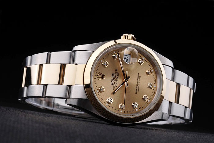 ロレックスのロゴと18Kイエローゴールドメッキスチールカットワーク王冠:13ミリメートル