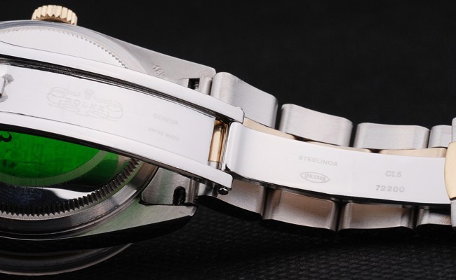 バック:ステンレススチールプッシュでケースの背面の緑ロレックスのロゴスタンプ