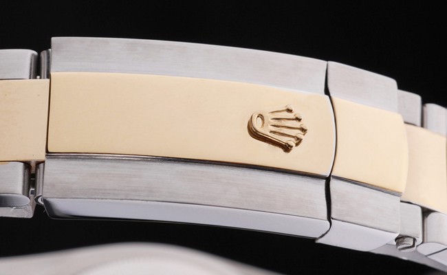 ブラッシュドステンレススチールケース:展開クラスプでロレックス彫刻fold-とつや消しステンレススチールと18Kイエローゴールドメッキ鋼における二つのトーンリンクブレスレットブレスレットの長さ