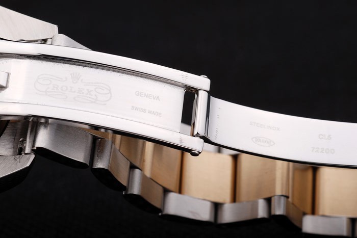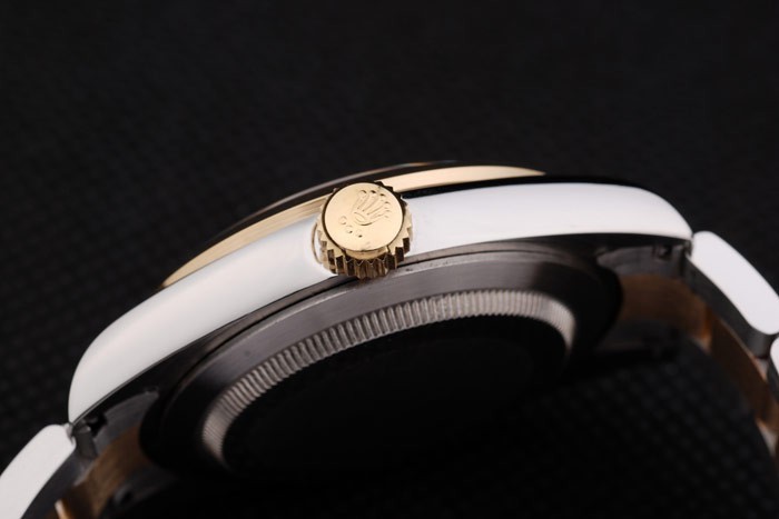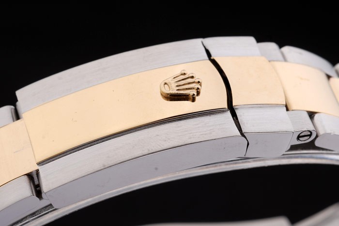 ロレックスの王冠彫刻とイエローゴールドリンクチェーン:ベゼル