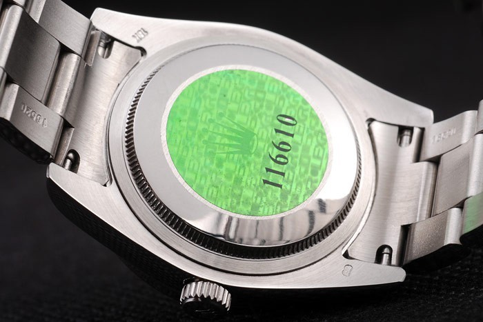 バック:ステンレススチールプッシュでケースの背面の緑ロレックスのロゴスタンプ