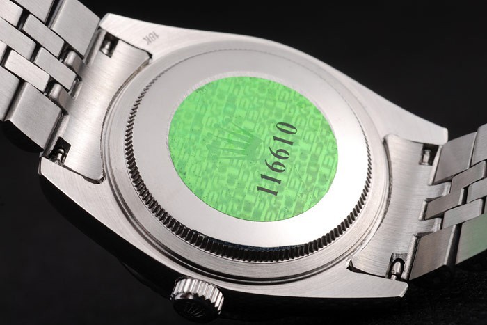 バック:ステンレススチールプッシュでケースの背面の緑ロレックスのロゴスタンプ