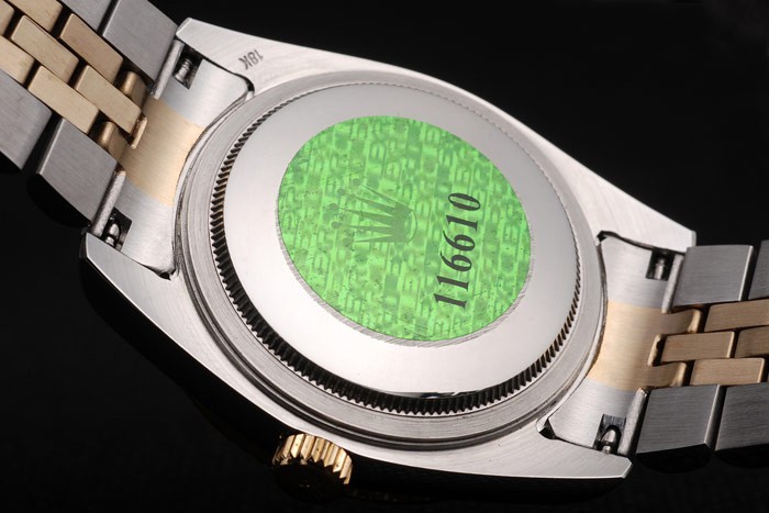 バック:ステンレススチールプッシュでケースの背面の緑ロレックスのロゴスタンプ