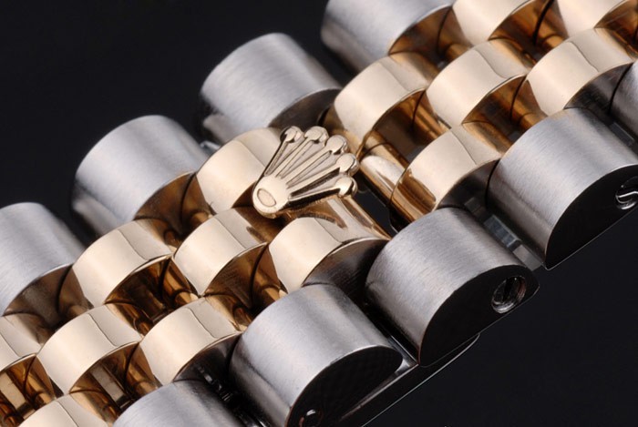 ロレックスのロゴを表示隠されたクラスプを彫刻と研磨されたステンレススチールと18Kイエローゴールドメッキ鋼における二つのトーンリンクブレスレット18Kイエローゴールドバンド
