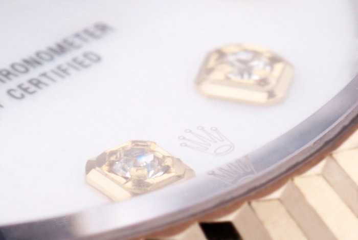 ロレックスのロゴの表示と18Kイエローゴールドメッキ鋼:ベゼル