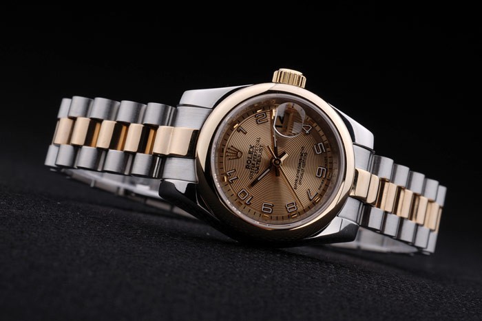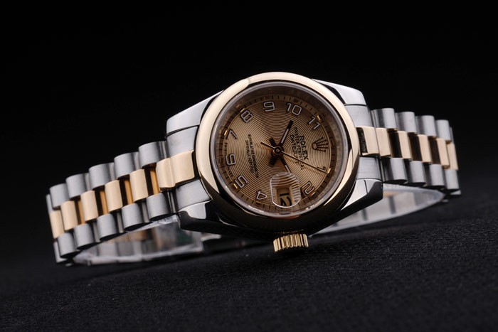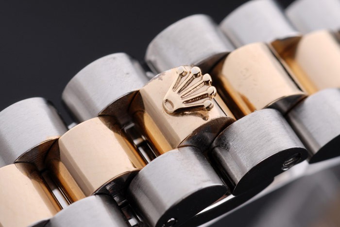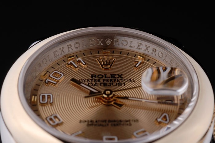 ロレックスのロゴの表示と18Kイエローゴールドメッキ鋼:バンド