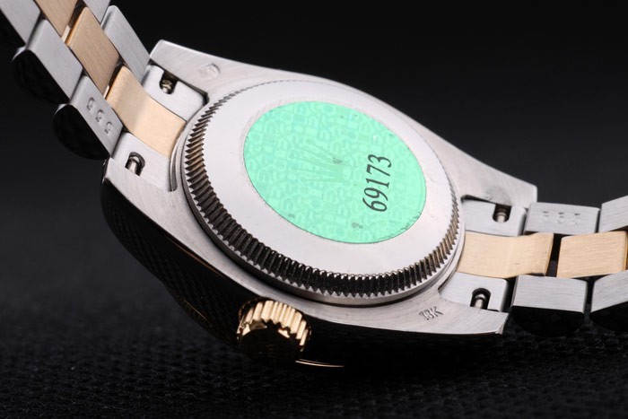 バック:ステンレススチールプッシュでケースの背面の緑ロレックスのロゴスタンプ