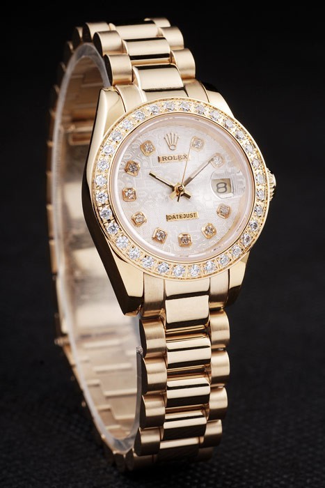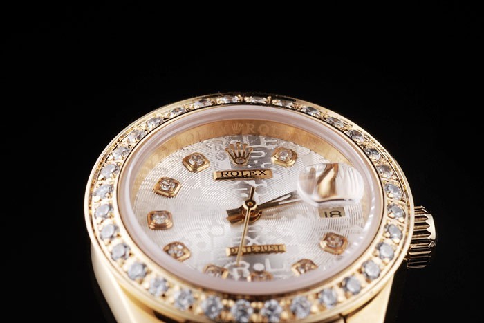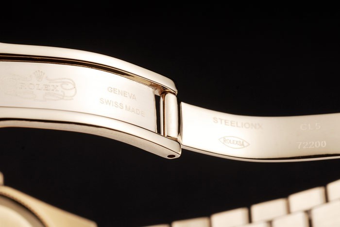 ロレックスのロゴを表示隠された留め金を刻まれた18Kイエローゴールドメッキステンレス鋼のダイヤモンドを散りばめたベゼル< BR>バンドタイプ:ステンレススチール