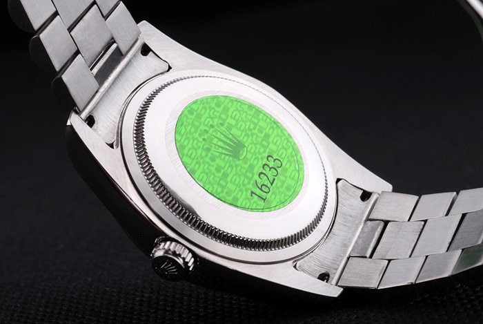 バック:ステンレススチールプッシュイングリーンロレックスのロゴスタンプ