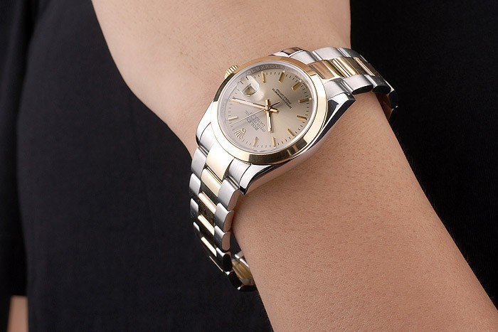 ブラッシュドステンレススチールケース:展開クラスプでロレックス彫刻fold-とつや消しステンレススチールと18Kイエローゴールドメッキ鋼における二つのトーンリンクブレスレットブレスレットの長さ