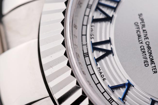 ロレックスの王冠彫刻とスチールリンクチェーン:ベゼル