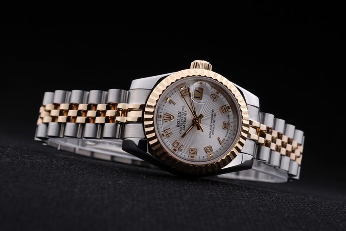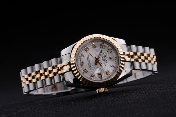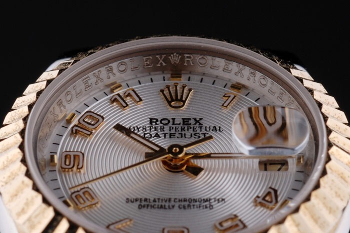 ロレックスのロゴの表示と18Kイエローゴールドメッキ鋼:ベゼル