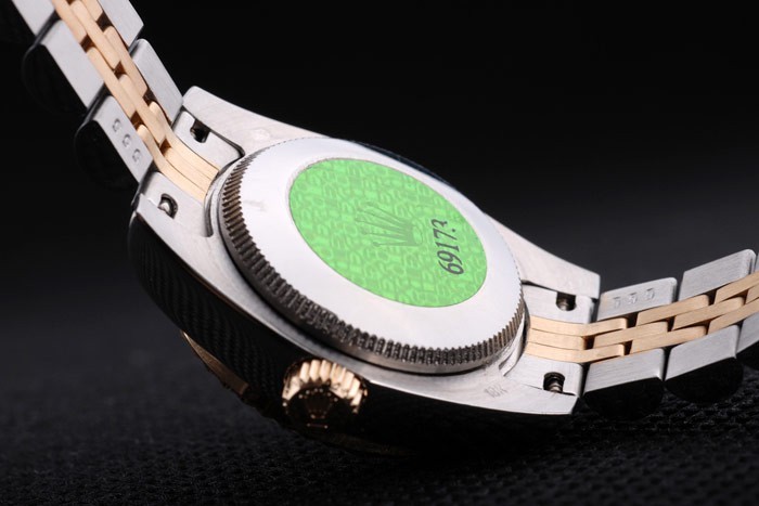 バック:ステンレススチールプッシュでケースの背面の緑ロレックスのロゴスタンプ