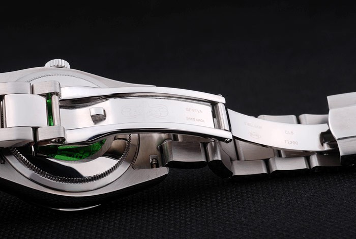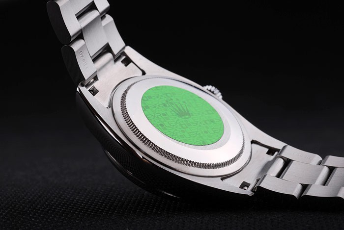バック:ステンレススチールプッシュでケースの背面の緑ロレックスのロゴスタンプ