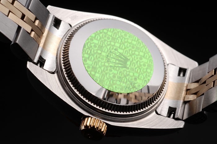 バック:ステンレススチールプッシュでケースの背面の緑ロレックスのロゴスタンプ