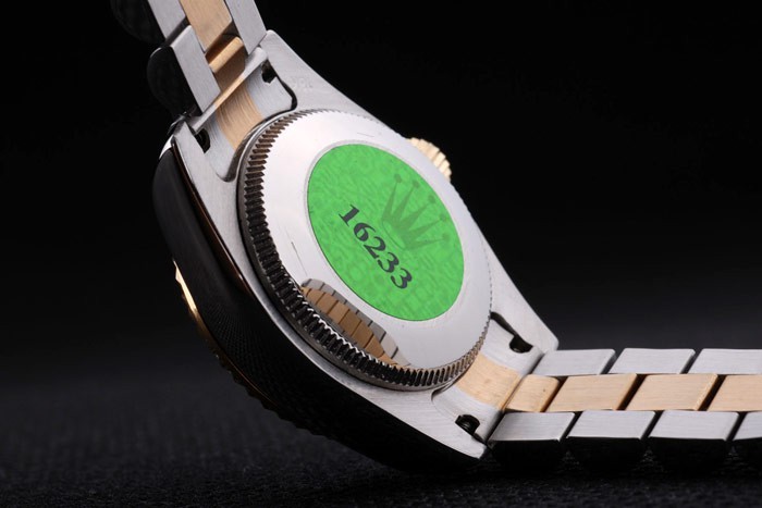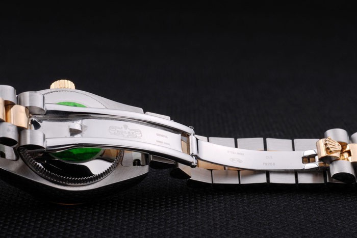 バック:ステンレススチールプッシュでケースの背面の緑ロレックスのロゴスタンプ