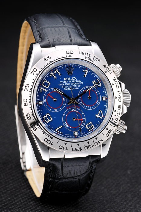 ロレックスデイトナステンレススチールケースブルーブラックレザーストラップをダイヤル