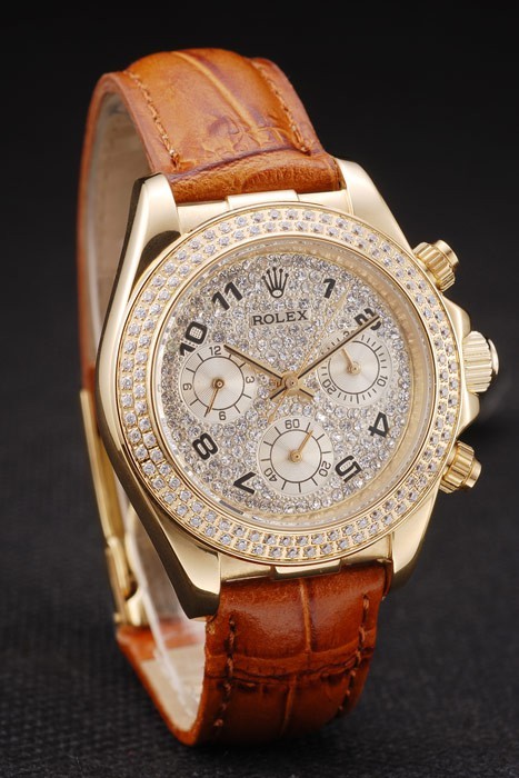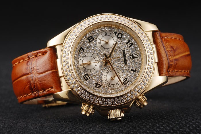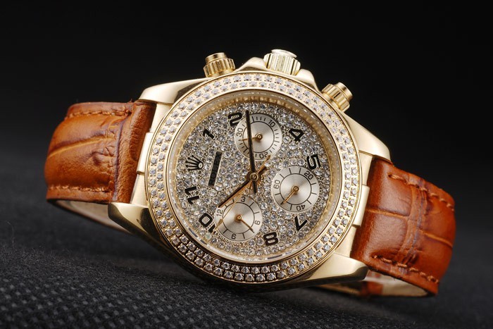 クラウン:ロレックスのロゴとその両側に2つの小さなカットワークプッシュボタン冠と18Kイエローゴールドのカットワークの王冠