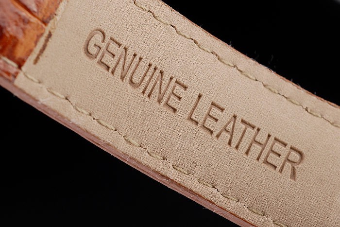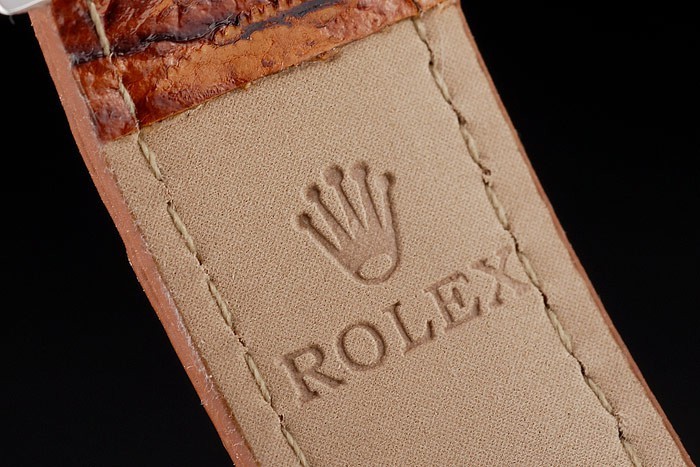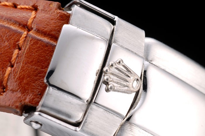 上にロレックスのロゴが刻まれたステンレススチール展開クラスプと茶色のワニ革ストラップをエンボスクロコダイル< BR>直径スキン:44のx 35ミリメートルウォッチクラスプ