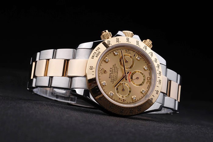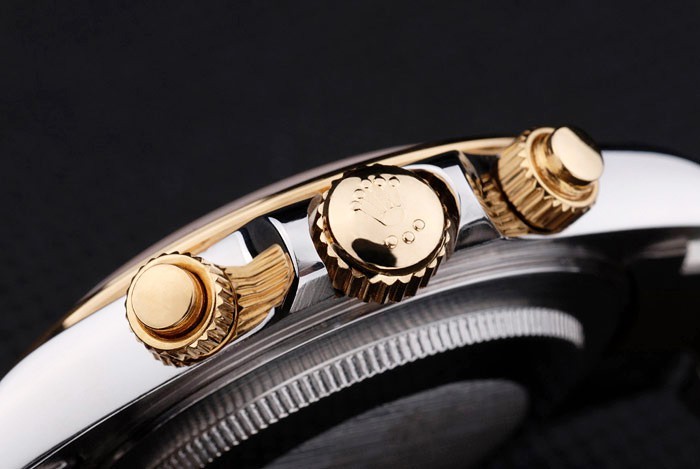 クラウン:ゴールドロレックスのロゴとその両側に2つの追加の冠をカットワーク冠を基調