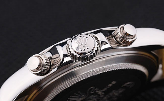 クラウン:ロレックスのロゴとポリッシュステンレススチールカットワーク冠とその両側に2つの追加の冠