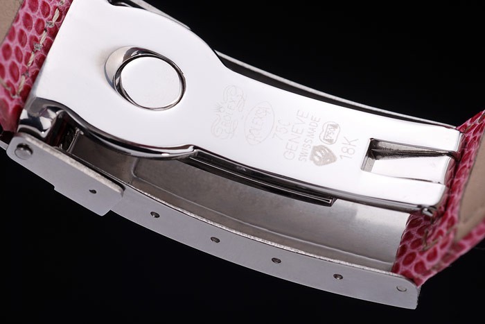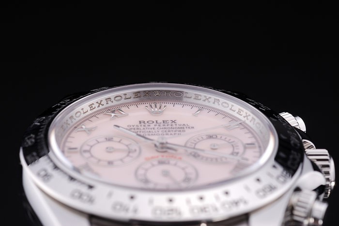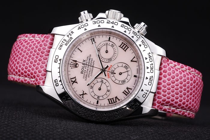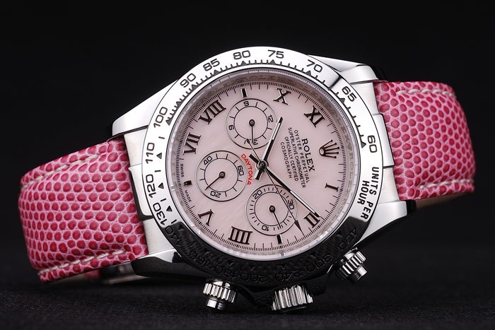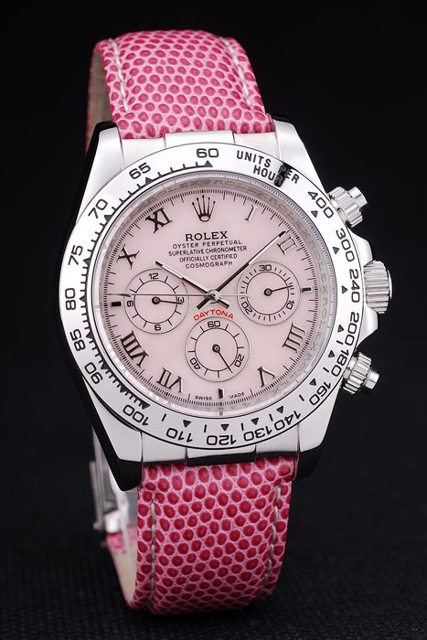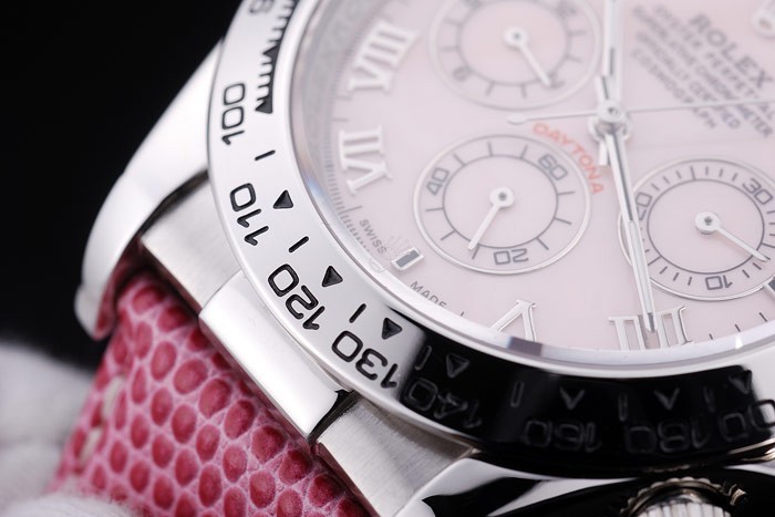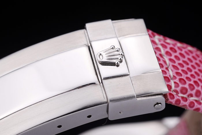 ロレックスのロゴを表示するステンレス鋼の展開クラスプ付きピンクヘビ革ストラップ:ベゼル