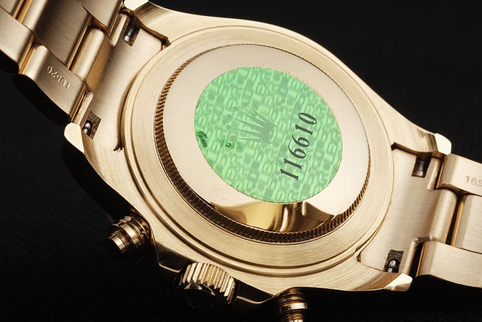バック:ローズゴールドのプッシュバックグリーンロレックスのロゴスタンプ