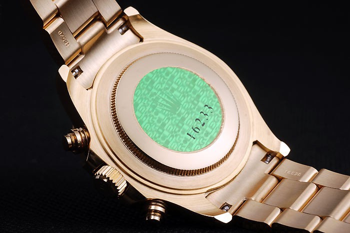 バック:ローズゴールドのプッシュバックグリーンロレックスのロゴスタンプ