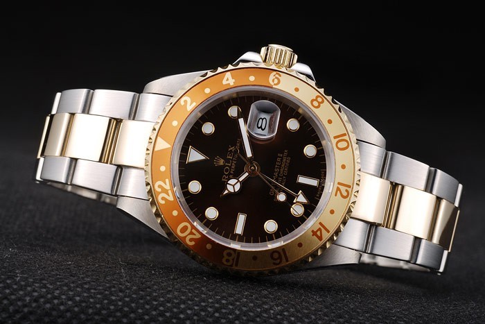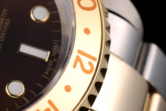 ロレックスGMTマスターIIゴールド色のセラミックベゼルブラウンダイヤルタキメーター