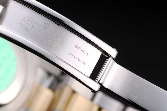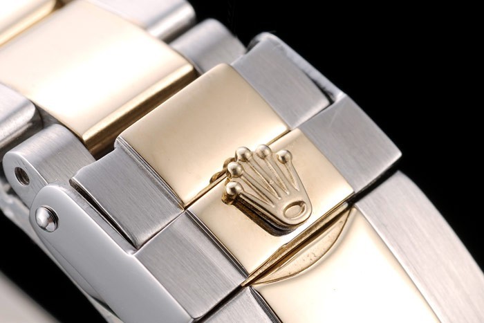 上にロレックスのロゴが刻印展開クラスプ金メッキとつや消しステンレススチールリンクブレスレット:ゴールドとアラビア数字